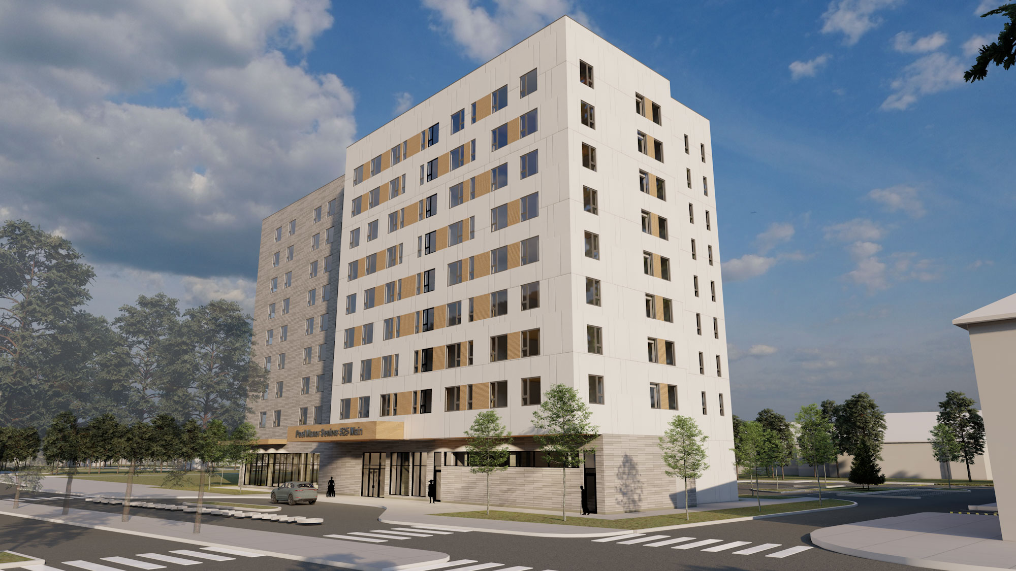The high-performance net zero design includes a hybrid mass timber structure, a geothermal heating and cooling system, a prefabricated envelope system, and sustainable, low embodied carbon materials that provide long lifecycles and lowered carbon emissions. Provisions will be made for future rooftop solar panels.